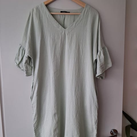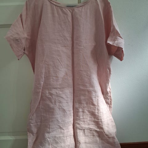 Upea uudenveroinen vitivalkoinen Nanso Sarastus pellavamekko, 100% pellavaa ja koko S.
