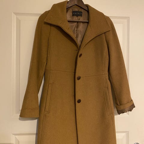 Myydään moitteeton ruskea pitkä takki Kaffe - merkiltä. Kevyt vuori, menee syksyllä/ keväällä ja lauhoilla pakkaskeleillä.
