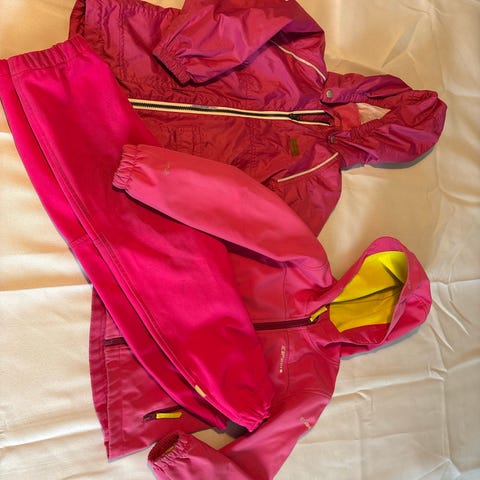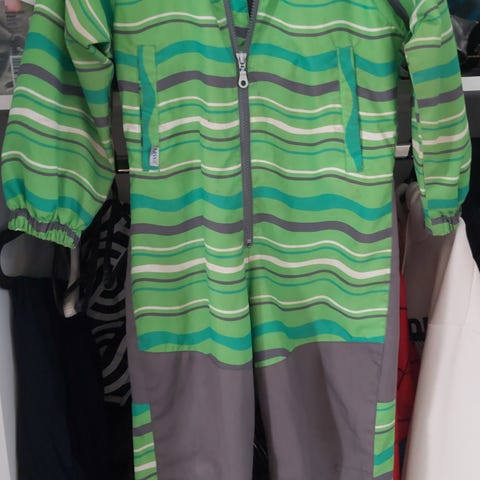 Annetaan uimapuku, jossa lyhyet hihat ja lahkeet. Vetoketju selässä. Muistaakseni tässä on uv-suojausta, mutta en nyt ole varma. Pepussa käytön jälkeä. Lupilu 110/116.