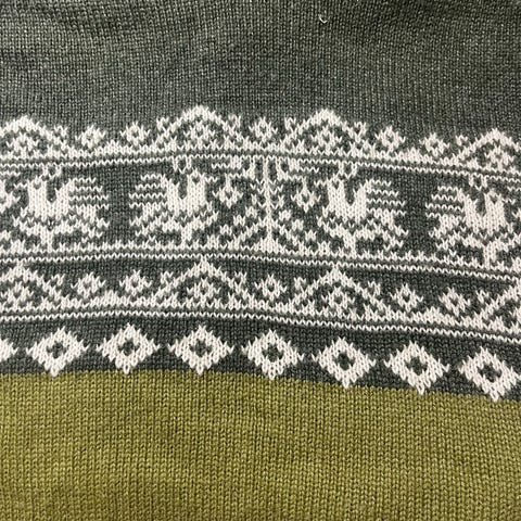 Miesten neuletakki koossa XL. Paksua, ribbineuloksella tehtyä neulosta, jossa kirjava, vaaleapohjainen sävy. Edessä nappikiinnitys ja V-pääntie. Sopii käytettäväksi arjessa lisälämmikkeenä tai kerrospukeutumisessa. Seitsemän veljestä langasta kudottu.