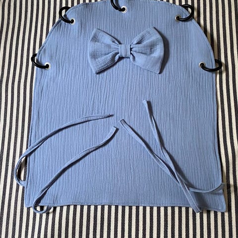 Uusi vaunuverho murretun roosan värisestä puuvillamusliinista, öko-tex 100 sertifioitu. Korkeus n.50cm leveys n.41cm, solmimisnauhat alakulmissa. Mustat renkaat tulevat mukaan.