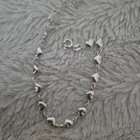 Kullan värinen rannekoru, jossa 6 kpl sydämiä kristallikoristein. Ei jalometallia.