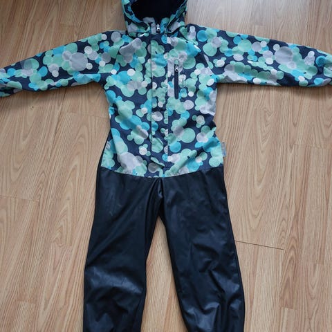 Ehjä ja siisti sadehaalari / kurahaalari, lämmin fleecevuori. Koko 120cm. Yhdellä lapsella käytössä ollut. Taloudessa ei lemmikkejä,savuton. Pesty miedosti tuoksuvalla.