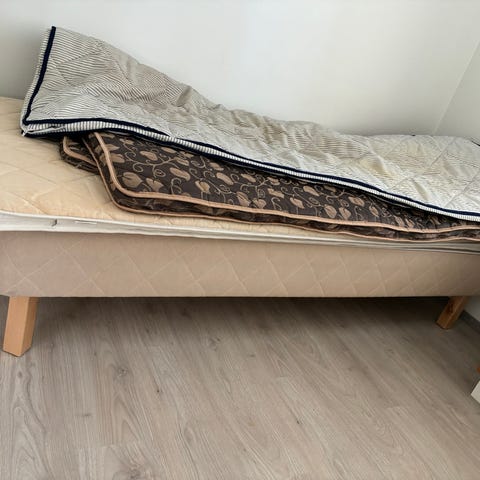 120cm leveä puinen sänky. Edellinen omistaja on maalannut alunperin puunvärisen sängyn valkoiseksi. Tukeva ja ei narise.
