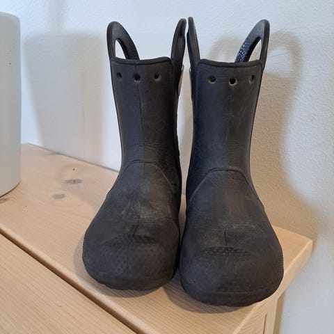 Crocs kumisaappaat koko c12 (29-30). Käytetty kunto, toisessa kumisaappaassa yläosasta vähän revennyt. Nimi kirjoitettu tussilla