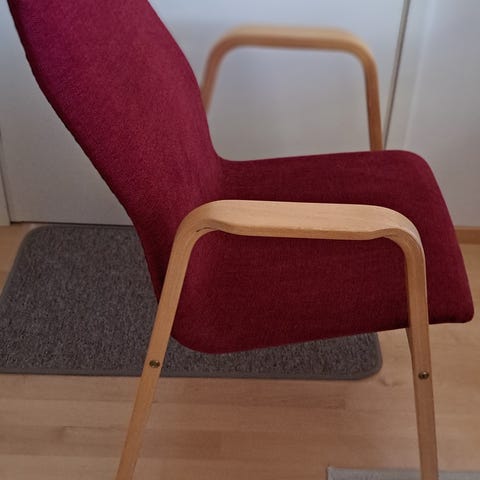 Ilmari Lappalaisen v. 1956 Askolle suunnittelema ja vuoteen 1963 saakka tuotannossa ollut Columna terveys/lepotuoli. Etujalat nousevat käsinojiksi ja taipuvat takajaloiksi. Osia yhdistää edessä ja takana poikkipuu, jonka varassa on yhtenäinen istuin-selkänoja. Selkänojassa on uloke ristiselän kohdalla. Puisissa käsinojissa on muovinauhasta kierretyt vahvikkeet. Tuoli on hyvässä kunnossa. Noudettavissa myyjän kotoa Taka-Töölöstä.