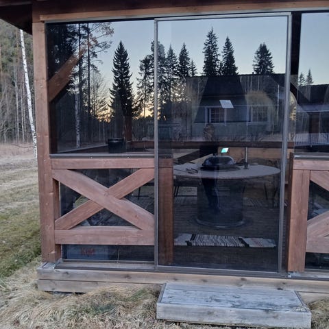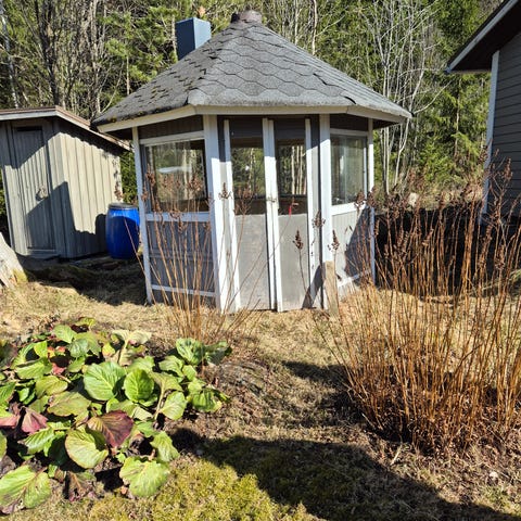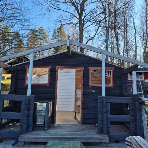 Hyväkuntoinen hirsinen grillikatos. Valokatteet sivuseinissä. Valetuilla perustuksilla ollut, eli alimmatkin hirret hyvässä kunnossa. Ostaja hoitaa kuljetuksen, katos voidaan nostaa kyytiin.