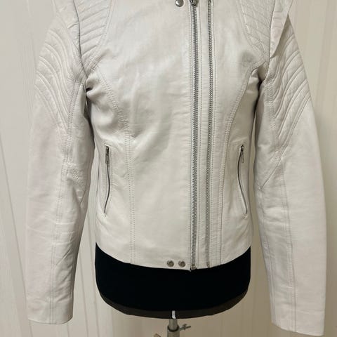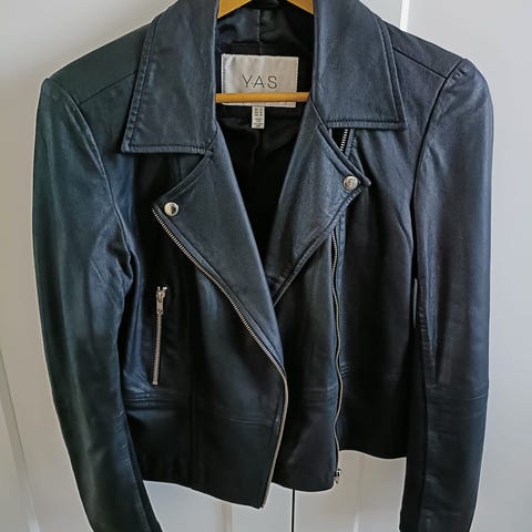Myydään muutamia kertoja pidetty nahkatakki. Hihojen sisäosa kangasmaista. Menee mielestäni myös XS-koolle tiukahkon mallinsa vuoksi.
