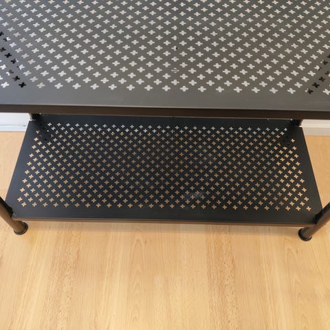 Musta metallinen sivupöytä ulos tai miksi ei sisällekkin.