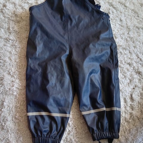 Hyväkuntoiset tummansiniset vuorelliset kurahousut, jalkalenksut ehjät.