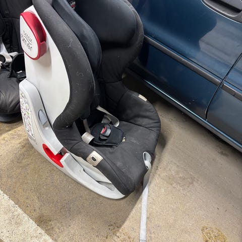 Asennetaan selkä menosuuntaan turvavöillä sekä etupenkin kiskoihin