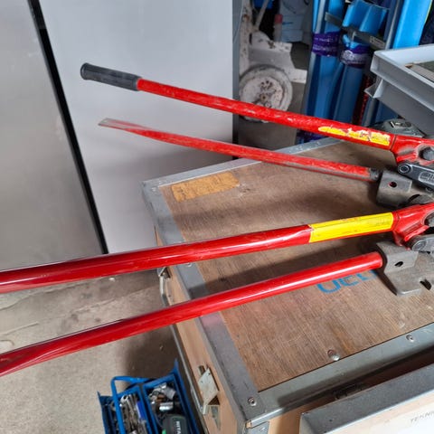 Käännettävät ja vaihdettavat leikkuuterät. Voidaan leikata jopa 8,8 luokan kierretankoja siististi ja kierteitä vaurioittamatta. Kokonaispituus 945 mm.