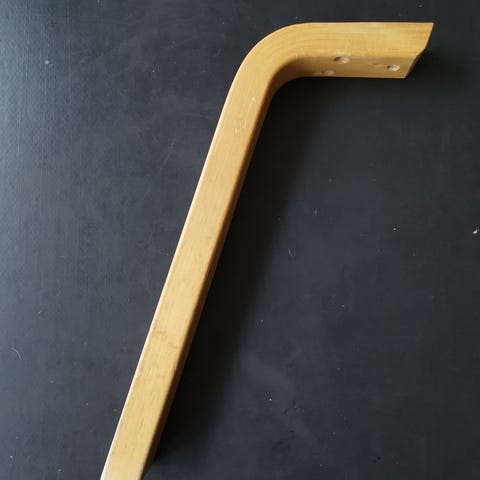 Alvar Aallon suunnitteleman ja Artekin valmistaman lasten tuolin N65 selkänoja. Lakka on hiottu pois ja pienet viilun pintavauriot on paikattu. Valmis vaikkapa maalattavaksi.