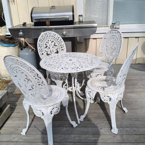 Pari löhötuolia ja valkopeltinen pöytä. Kaikki ehjiä, pöydässä vähän käytön jälkiä. 40€/tarjous koko setti. Noudettuna.