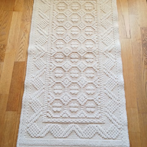 Kreikasta ostettu kevyt villamatto. Kestää pesua. Ei pölyä.