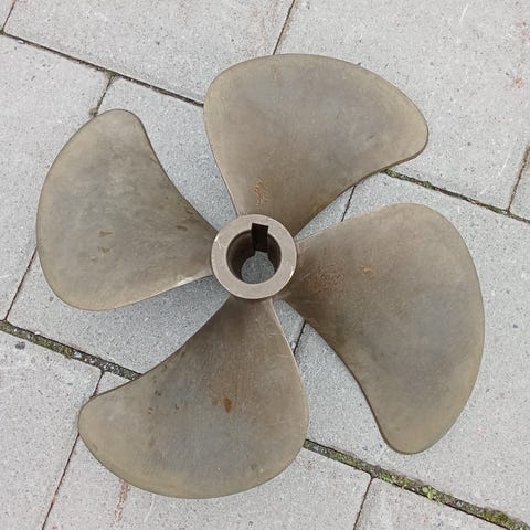 Max-Prop Classic kaksilapainen automaattisesti kääntyvä potkuri purjeveneeseen. Materiaalina pronssi. Potkurin koko on 18 tuumaa ja nousu säädettävissä 10-30 tuumaa. Akseli 30mm. Teknisesti kuin uusi, ollut ajossa vain 10h. Potkurimaali ei pysynyt kiinni uudessa pinnassa ja siksi laikukas. Huollettu ja rasvattu. Erikseen tarjottavissa myös 30mm akseli pituudella 1390. Erinomainen pito eteen ja taakse, purjehduksessa minimaalinen vastus.