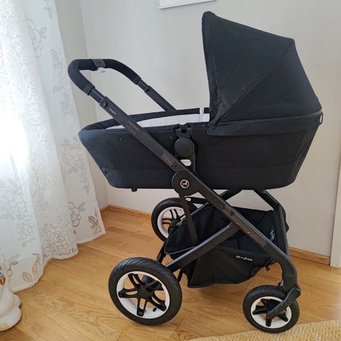 Cybex Libelle matkarattaat sinisellä kankaalla. Kevyet ja todella pieneen kokoon taittuvat rattaat, joissa on säädettävä selkänoja, viisipistevaljaat ja säädettävä jalkatuki. Alla on tavarakori pienten kantamusten kuljettamiseen. Meillä ollut vähällä käytöllä, korkeintaan pientä pintapesua vaatii.