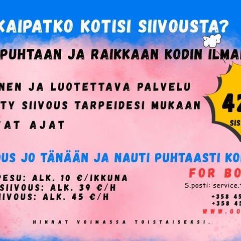 Мне 41 год, я студент Metropolia. Помимо учёбы я подрабатываю и живу в Эспоо. Предлагаю услуги по погрузке и разгрузке. Будь то мебель, бытовая техника или личные вещи — я могу перевезти всё. Моя ставка — 20 € в час. Я приложу все усилия в работе, и если вы останетесь довольны, буду рад, если вы немного повысите оплату.