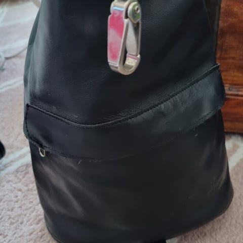 Roomasta ostettu aito nahka reppu. Korkeus n 30cm. mmm.