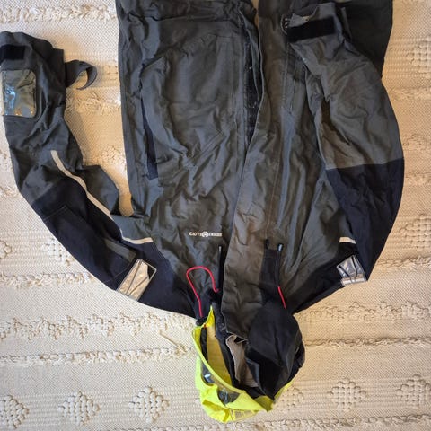 Myydään Musto purjehduspuku ( takki ja haalarihousut) koko L . Vanha mutta käyttökelpoinen niin purjehdukseessa, kalastuksessa kuin muussa veneilyssä. Nouto Helsingin Kaitalahdesta tai kysy Toridiilin mahdollisuutta.