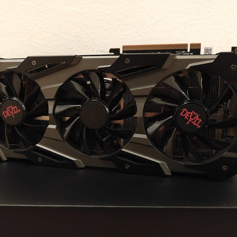 PowerColor Red Devil Radeon -näytönohjain. Kortissa on kaksituulettiminen jäähdytysratkaisu ja metallinen backplate. Liitäntöinä 3xDisplayPort- ja 1xHDMI. Toimiva peli, jäi yli päivityksen yhteydessä. Vain nouto Vantaalta.