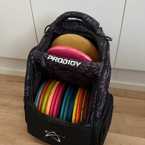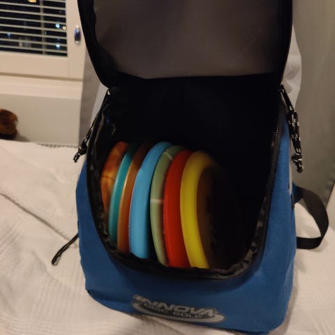 Itsellä on frisbeegolf jäänyt taakse mutta kiekot ja reppu vie vielä tilaa.