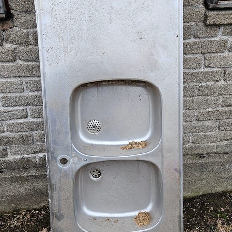 Altaiden alla on viemäröintiosat joista toinen on halki mutta viemärin lukot toimii. Soveltuu esimerkiksi keittiöön, kodinhoitotilaan, autotalliin tai pihalle pesualtaaksi