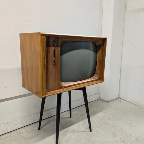 Hyvässä kunnossa säilynyt 50-luvun Philips kaappi televisio myytävänä. Kaapissa rulo-ovi, joka toimii edelleen hienosti. Löytyy myös avain ja sekin toimii. Alla oleva jalusta ei ole alkuperäinen. Telkkaria ei ole siihen kiinnitetty. Jalka tulee kuitenkin mukaan.