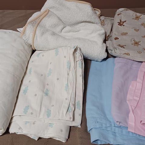 Hoitopöydälle patjan päälle pestäviä puuvillaisia alustoja. Kaikissa on jotain pientä tahraa jota en ole yrittänyt poistaa. Saa varmasti pois sappisaippualla tms. Yhdellä lapsella olleet käytössä. Saa tulla hakemaan ilmaiseksi tai voin postittaa postituskuluja vastaan.