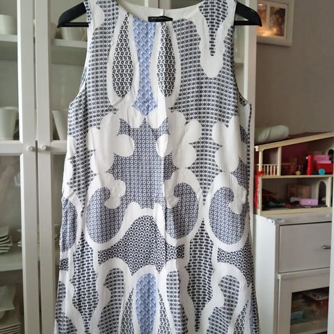 Sopii mekkona käytettäväksi tai tunikana esim. leggingsien kanssa, koko M, pituus takaa kaula aukosta alahelmaan 72 cm