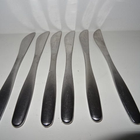 Hackmanin valmistamia ruokaveitsiä 12 kpl. Veitset ovat hyväkuntoisia ja vääntymättömiä ja ovat pituudeltaan 19,7 cm, Veitsi, pöytäveitsi ruokaveitsi. Toridiili