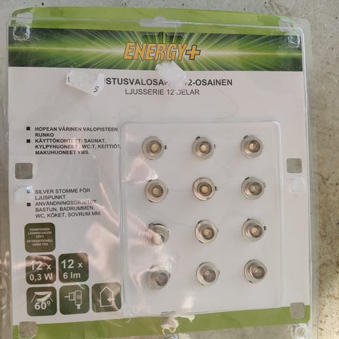Eglo Pineda LED -spottivalosarja, jossa kolme upotettavaa valaisinta. Jokaisen valaisimen teho on 4,9 W ja valovirta 360 lm. Valon väri on lämmin valkoinen 3000. Valaisimien halkaisija on noin 78 mm ja asennusaukko 65 mm. Suojausluokka IP44. Käyttöjännite 220–240 V, käyttöikä jopa 15 000 h.