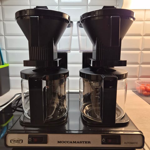 Myydään hyvässä kunnossa oleva Moccamaster kahdella pannulla.