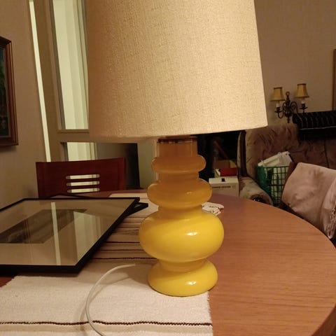 Vanha seinä- tai pöytälamppu. Varjostin puuttuu. Hehkulamppu ei kuulu kauppaan. Nouto tai jos postitus, kulut ostajalle, maksu MobilePay.