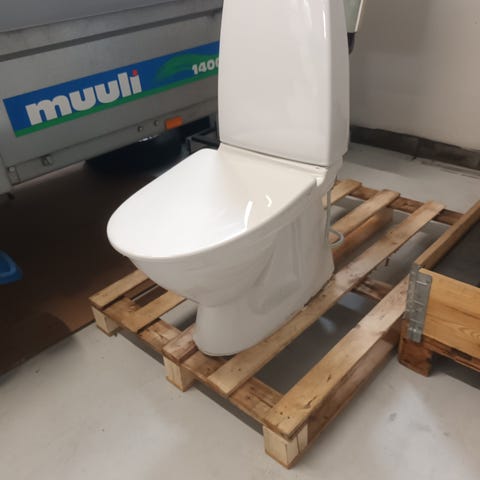 Valkoinen lattia-wc-istuin, jossa yläpuolinen huuhtelusäiliö ja kaksitoiminen huuhtelupainike. Materiaalina lasitettu keramiikka. Istuimessa on kannellinen wc-rengas. Soveltuu lattia-asennukseen viemäröinnillä lattiaan. Sopii käytettäväksi esimerkiksi kylpyhuoneessa tai wc-tilassa peruswc-istuimena. Hyväkuntoinen ja toimiva, siisti.