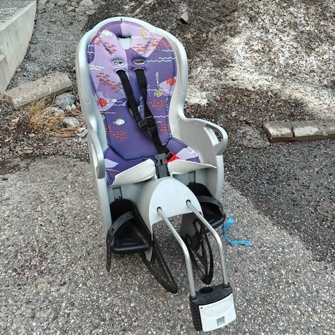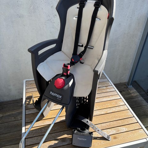 Hamax lasten polkupyörän istuin, enimmäiskuormitus 22 kg. Istuimessa on vihreä pehmuste, harmaa runko ja säädettävät turvavyöt. Kiinnitys pyörän runkoon tai tavaratelineen taakse istuimen omalla kiinnitystelineellä. Soveltuu lapsen kuljettamiseen polkupyörän takana valmistajan painorajaan asti.