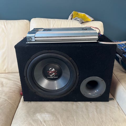12” subbarille jykevä kotelo, elementti rikki mutta otettava mukaan, en erikseen irrottele.