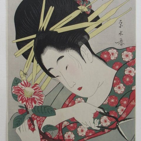 雪月花 Setsugekka雪 means snow, 月 means moon, 花 means flower. It refers to the snow in winter, the moon in autumn, and the cherry blossoms in spring, and is a word that signifies the natural beauty and elegance of the four seasons.The three bold characters of “Setsugekka” (雪月花)—snow, moon, and blossoms—unfold across this scroll by Ippo, written at the age of eighty‑eight. Each stroke carries the quiet assurance of a seasoned calligrapher, balancing strength and openness in a way that allows the meaning to resonate beyond the words themselves. In Japanese aesthetics, setsugekka evokes the refined beauty of the seasons: winter snow, the autumn moon, and spring flowers, a poetic shorthand for nature’s elegance and the passage of time. Ippo’s brushwork embraces this spirit, the characters standing with a clarity that feels both contemplative and uplifting. Signed “Eighty‑eight‑year‑old Ippo” (八十八翁 一甫), the piece reflects a lifetime of practice distilled into a few decisive strokes. Displayed in a room, the scroll introduces a calm, spacious energy—the kind of presence that subtly sharpens the atmosphere, giving the space a sense of purity and seasonal grace. The work comes with its box and has been carefully preserved.一甫 Ippo Japanese Zen kakejiku kakemono wall hanging scroll / 雪月花 Setsugekka with Boxwith signature '88 years old Ippo' 八十八翁 一甫Whole dimensions: 20" W x 47" H / 51cm x 119.4cmInside dimensions: 16.8" W x 11.5" H / 42.7cm x 29.4cmMaterial: PaperTechnique: HandpaintedRoller ends: WoodWeight: 590g including BoxConditionAntique items have originally crease, stain, damage, and more. I would like you to refer to the listing photos, but please understand that it's difficult to show all conditions by the photos. Special notes: STAIN a little, CREASE a little, DAMAGE a little, FOLD, WARP, STAIN in the back of the mounting.Shipping"FREE SHIPPING" all over the world by International ePacket Light, EMS, or DHL.
