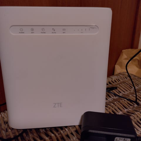 ZTE reititin valkoisena. Pöydälle asetettava malli, jossa etupaneelissa merkkivalot yhteyden ja toimintojen seurantaan. Mukana virtalähde sekä käyttöohjeita. Soveltuu kodin tai pienen toimiston internet-yhteyden jakamiseen useille laitteille langattomasti ja tarvittaessa myös kiinteillä yhteyksillä. Toimii moitteettomasti.