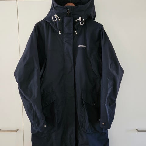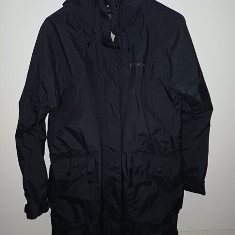 Didriksons pitkä naisten parkatakki, ohut vuori, Sanne Parka 2. Koko 44, mutta on pienempi kuin itselläni oleva saman merkin ja koon talvitakki. Olka-helma pituus edestä 90 cm, takaa vähän pidempi. Kainalo-kainalo n. 57 cm. Väri musta. Vyötäröllä, helmassa ja hupussa säätökuminauhat.