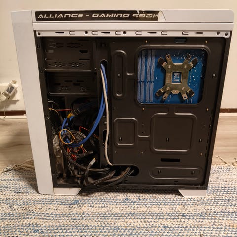 Kotelossa läpinäkyvä sivupaneeli ja etupaneelissa ilmanottoaukot. Kokoonpano soveltuu yleiseen tietokonekäyttöön ja pelaamiseen laitteiston suorituskyvyn puitteissa. Näytöllä näkyvien tietojen perusteella käyttöjärjestelmä on asennettu SSD‑levylle, mikä nopeuttaa käynnistystä ja ohjelmien latausta.
