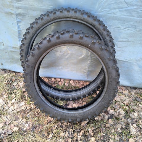 Nappulakuvioiset moottoripyörän renkaat. Sopivat maasto- tai endurokäyttöön. Karkeakuvioinen pintamalli tarjoaa pitoa epätasaisilla alustoilla, kuten soralla ja metsäpoluilla. Renkaat on tarkoitettu moottoripyörään, jossa käytetään maastoon suunniteltuja renkaita.