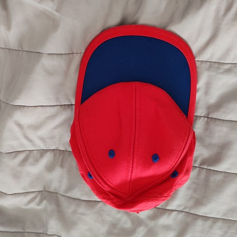 Ekaluokkalaisen lippis, keltanokka liikenteessä. Ei ole paljoa pidetty, jos ollenkaan.