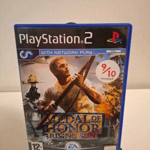 EA Games Medal of Honor Rising Sun on PlayStation 2 -peli. Peli on ensimmäisen persoonan toimintapeli, joka sijoittuu toisen maailmansodan Tyynenmeren rintamalle. Pelissä on yksinpelikampanja sekä moninpelivaihtoehtoja. Ikäraja on 12+. Pakkaus sisältää pelilevyn ja kotelon kansipapereineen kuvien mukaisesti.