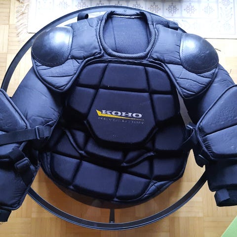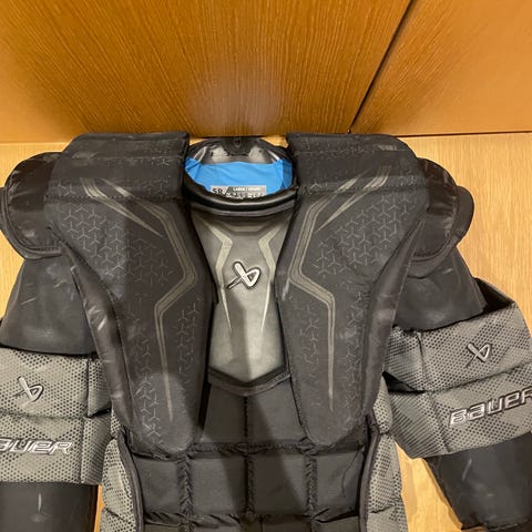 Bauer Elite INT M koon panssari kaupan. Parilla maalivahdilla ollut, normaalia kulumaa mutta edelleen täysin toimiva kampe.