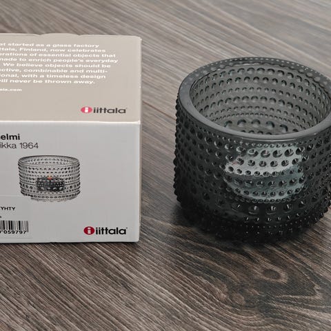 Iittala Kastehelmi jalallinen lasikulho harmaa