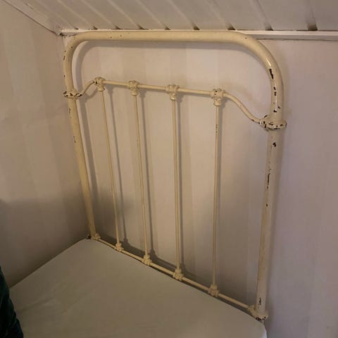 Puinen sänky 1900-luvun alkupuolelta jossa runsaat barokkityyliset koristekaiverrukset. Päädyissä on hienoja yksityiskohtia, kuten kierrettyjä pylväitä, lehtiaiheita ja profiloituja reunoja. Laidat metallisilla hakasilla sekä paksu puinen pohjalevy tekevät sängystä tukevan. N. 120 cm leveä ja 215 cm pitkä.