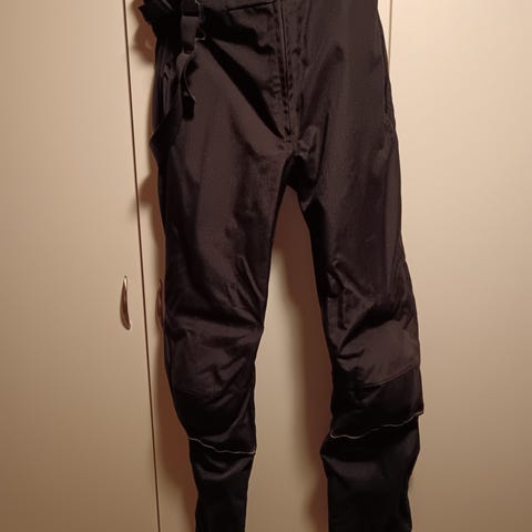 Hanx housut kokoa 50. Väri musta. Housuissa on polvissa muotoillut leikkaukset ja lahkeissa heijastinnauhat. Tosi vähällä käytöllä kyytiläisen yllä olleet