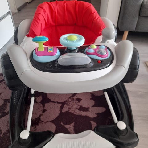 Muunneltava hauck kävelytuoli. Kaikki osat ei ole tallessa. Toinen peili mennyt poikki. Äänet toimii.