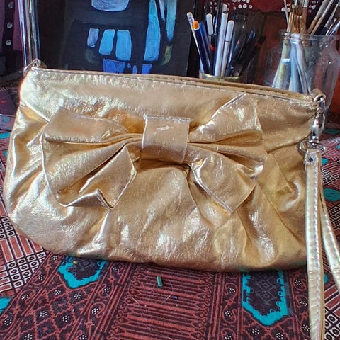Leveys n. 13 cm, korkeys 15 cm, hihna n. 30 cm. Vintage laukku ehkä 1960-luvulta. Valmistaja E J laukku Varkaus.